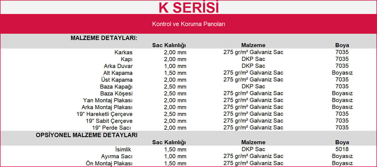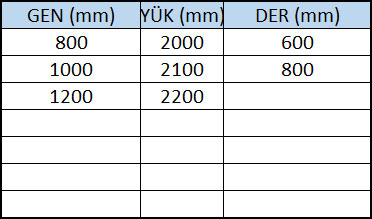 İLAVELER: Kapı topraklama kablosu (Her kapı için 1 adet)